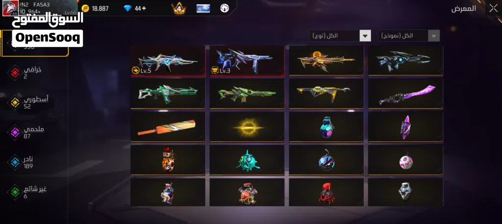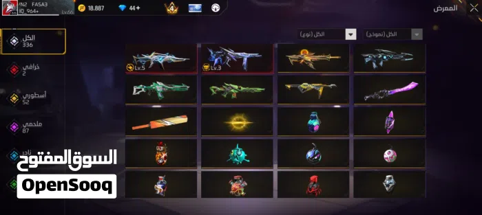 حساب فري فاير قوي للبيع مليان نوادر وسلاحين مطورين وحواضن لفل 66