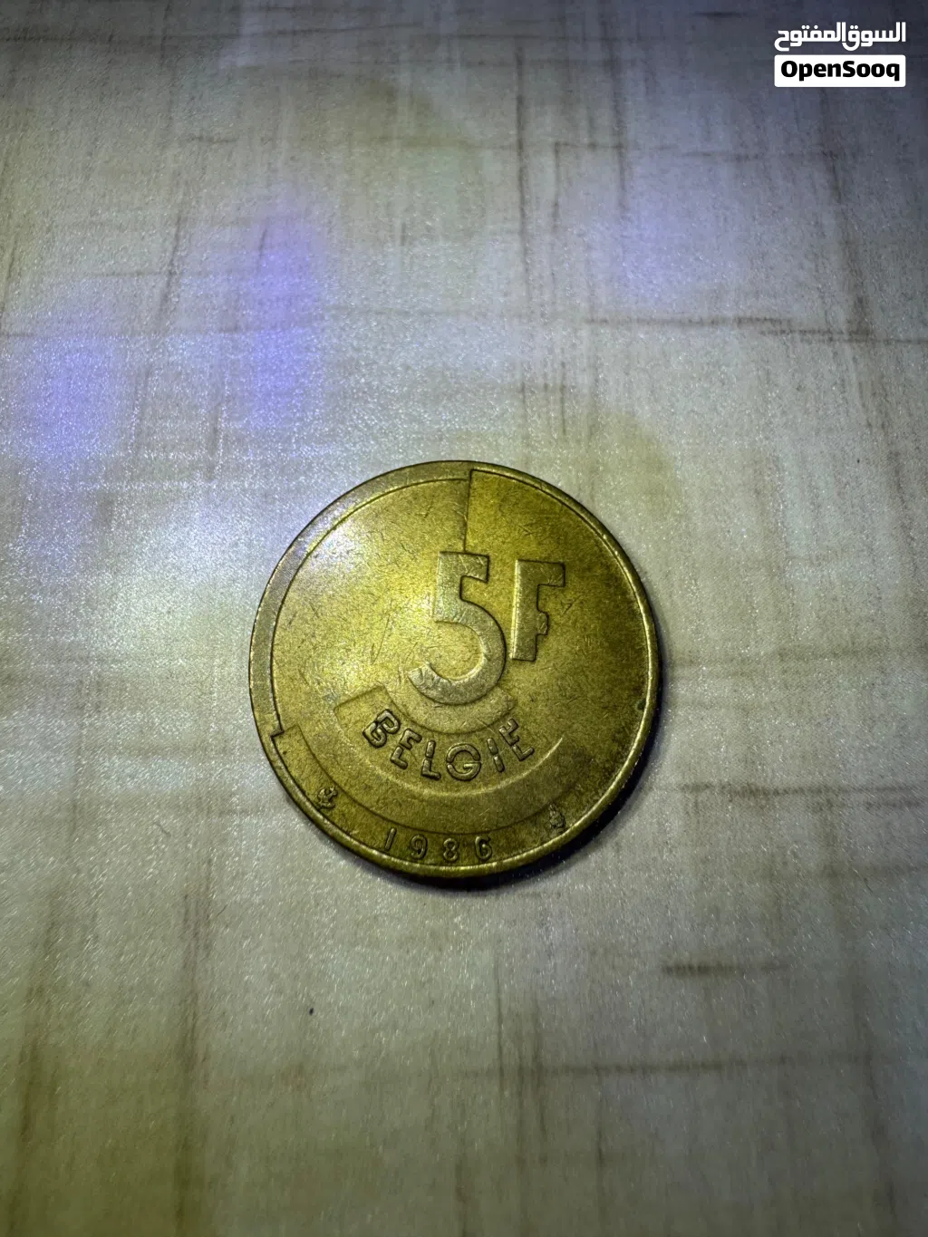 عندي عمله قيمتها5 بلجيكي فئه فرانك قاره أوروبا بحاله كويسه نوعها عملات تداول عاديه تعود لعهد الملك بودوان الأول عام 1986ميلادي امام العمله توجد صوره نمطية لبودوان الاول خلف العمله التاريخ و قيمه العمله وكلمه بلجيكا الماده سبيكه من النحاس92% والنيكل2% والألمنيوم6% القطر 24مم السماكه 1.72مم الوزن 5.5جم الشكل دائري كانت عمله متداولة في ممكله بلجيكا بين عام1986-1993ميلادي وتوقف تداولها 2002/2/28 السعر 29ريال الموقع غرب الرياض العريجاء الوسطى قرب نادي الهلال التواصل أو الاستفسار واتسب او نفس التطبيق يوجد توصيل مجاني للقريب