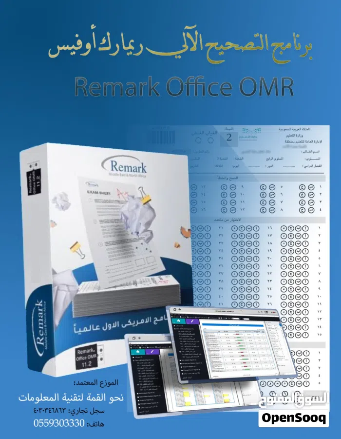 برنامج التصحيح الآلي ريمارك أوفيس Remark Office OMR باللغة العربية للمدارس والجامعات ومراكز البحوث. موزعون معتمدون في المملكة العربية السعودية. نقدم خدماتنا على مدارس أيام الأسبوع. تواصل معنا على الواتس مباشرة للحصول على عرض سعر للبرنامج وخدماته والتدريب عليه. مؤسسة نحو القمة لتقنية المعلومات