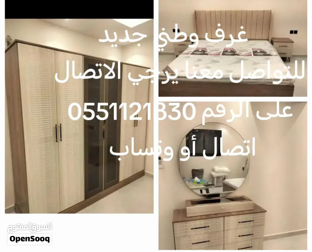 غرف وطني جديد جاهزة بالرياض غرف نفرين يوجد نجارفكك وتركيب ونقل الغرف والمطابخ يوجد قسم للمطابخ مطابخ المنيوم صاج وفرومايكا وقلدن أسعار شامل التوصيل والتركيب داخل الرياض للتواصل معنا يرجى الاتصال على الرقم الموجود في الموقع اتصال أو وتساب متمنيين أن تحوز خدماتنا ديمن على رضاكم والله الموفق