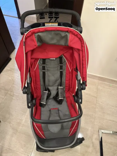 عربة اطفال مع مقعد اطفال للسيارة ماركة شيكو مستعمل بحالة ممتازة للبيع